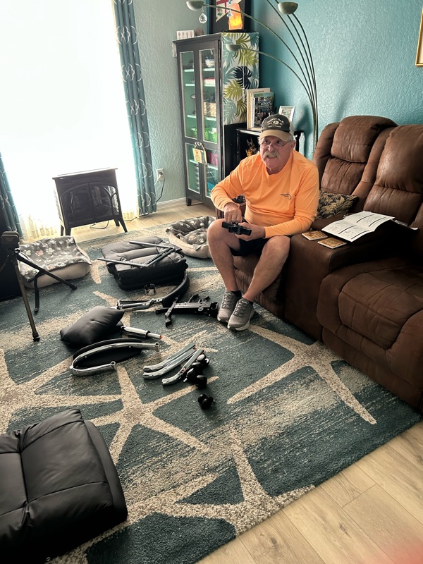 Our friend Linda (Nancy’s travel friend) bought a house in Del Webb, nearby. This past Sunday we went to see what she had bought. It’s a lovely home fully furnished with some high-end decor. Linda’s already painting the bedroom and replacing some carpet but otherwise going to enjoy the community and “fix-up” bit by bit. We took a bottle of bubbly, little snack muffins and a vase of flowers for her. It’ll be nice having her closer by for playing Catan, etc.