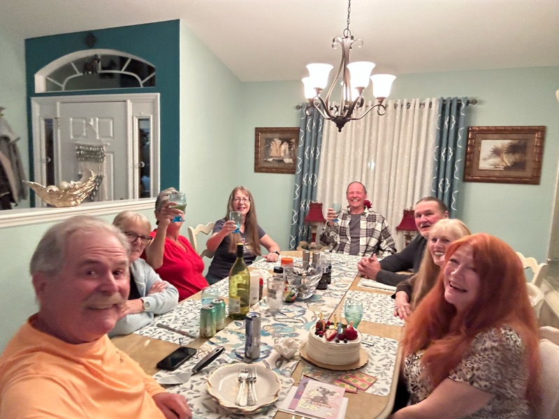 There was a funny mixup with Sue and Wayne. We thought THEY invited us over for wine on Wednesday. Well, on the drive there I got a text from Sue asking “where are you?” And I said “about two minutes away.” She said “from where?” π As it turned out, she was standing outside our front door, our Scotties barking, wondering where we were. And … we were driving to her house for wine. So, we turned around and I had to run into Walmart’s booze store in the cold rain to pick up a couple bottles of wine. Anyway, we had a good visit and a few laughs.