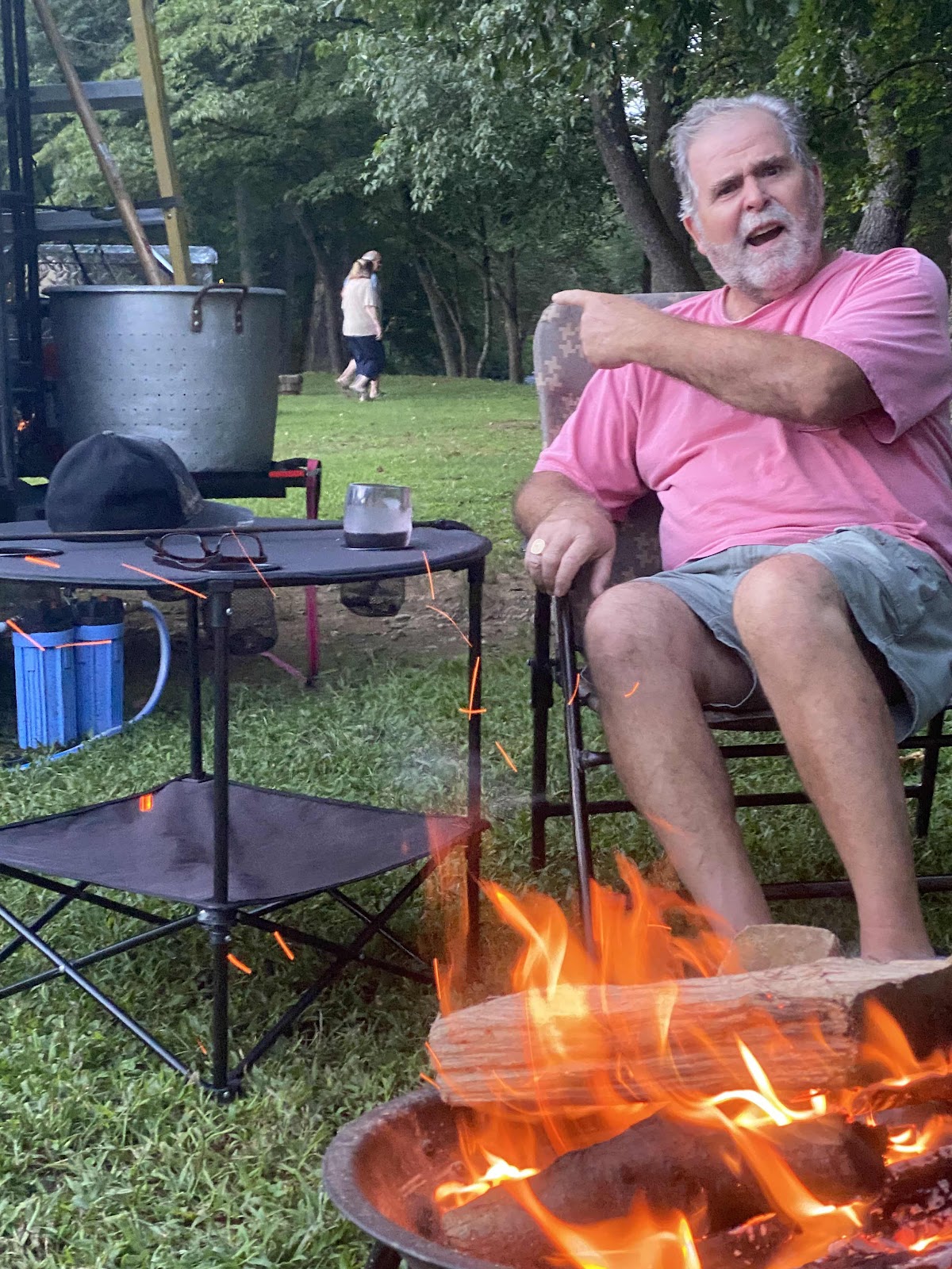 Mark lamented (last week) to LaDonna and Wayne that he “wasn’t allowed” a pot big enough to boil a dozen corn. Ha! The camper next to us is from California and has a massive pot that rides on the rear bumper. 😂