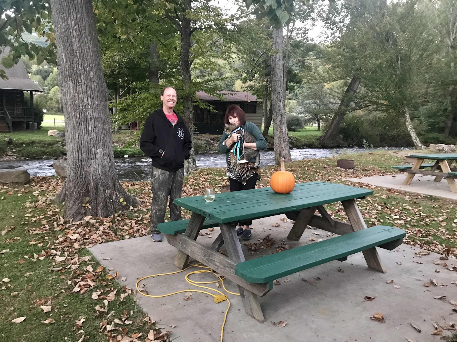 Sue and Wayne and their friends Raymond and Amy are in Maggie Valley. It looks like the weather is cool, but nice.