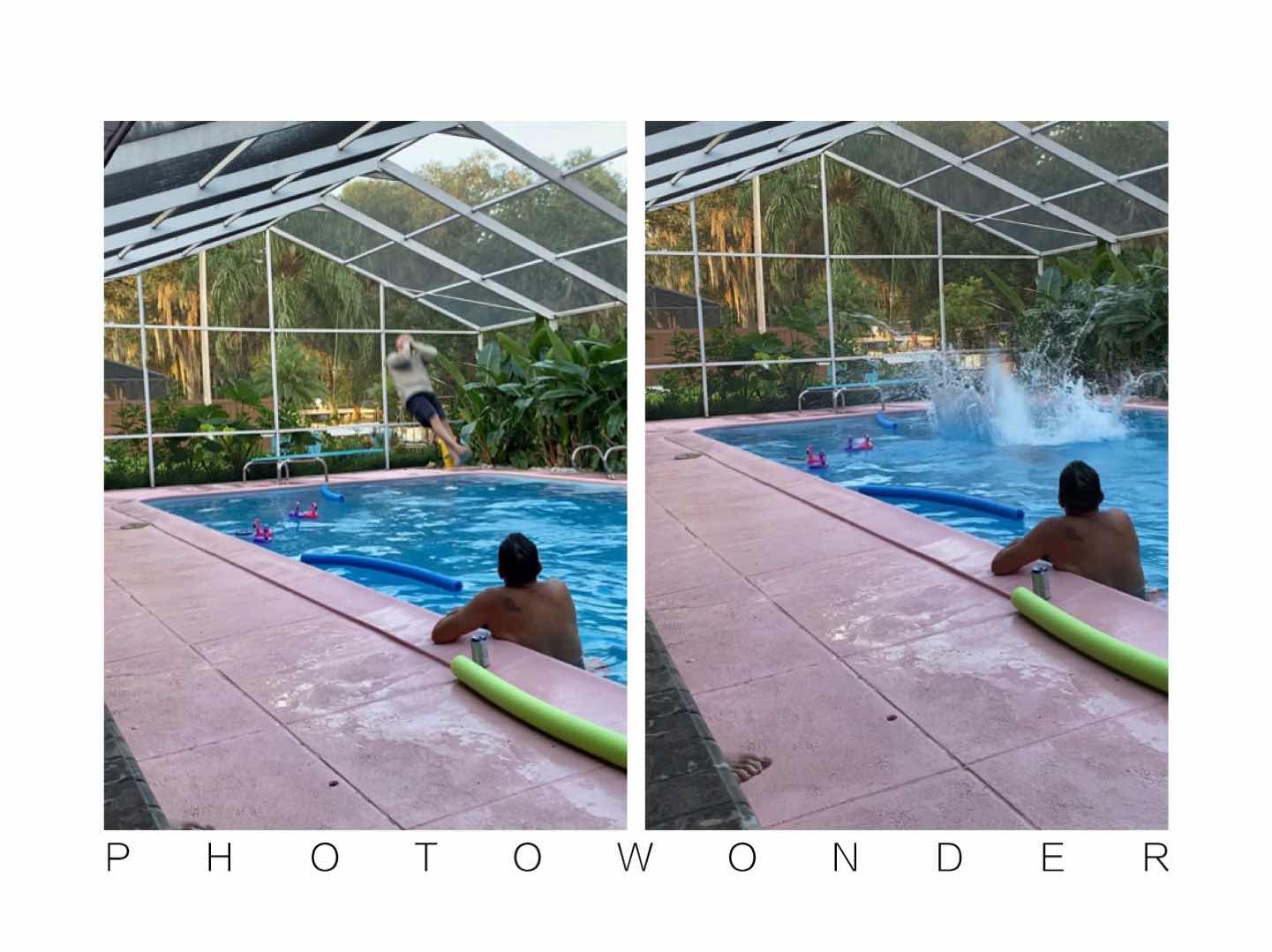 We had a blast in the pool … for hours. KimBob’s grandson phoned … and Bob performed a can-opener jump. Lots of laughs.