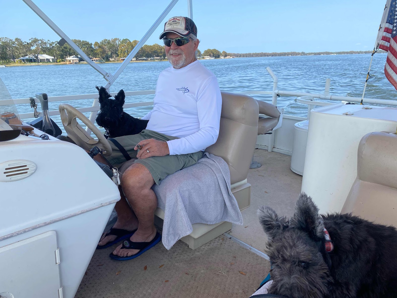 Today, Sunday, there was no wind, and we took the boat out for a two hour cruise down the Dead River, and on to Lake Harris. Gorgeous.