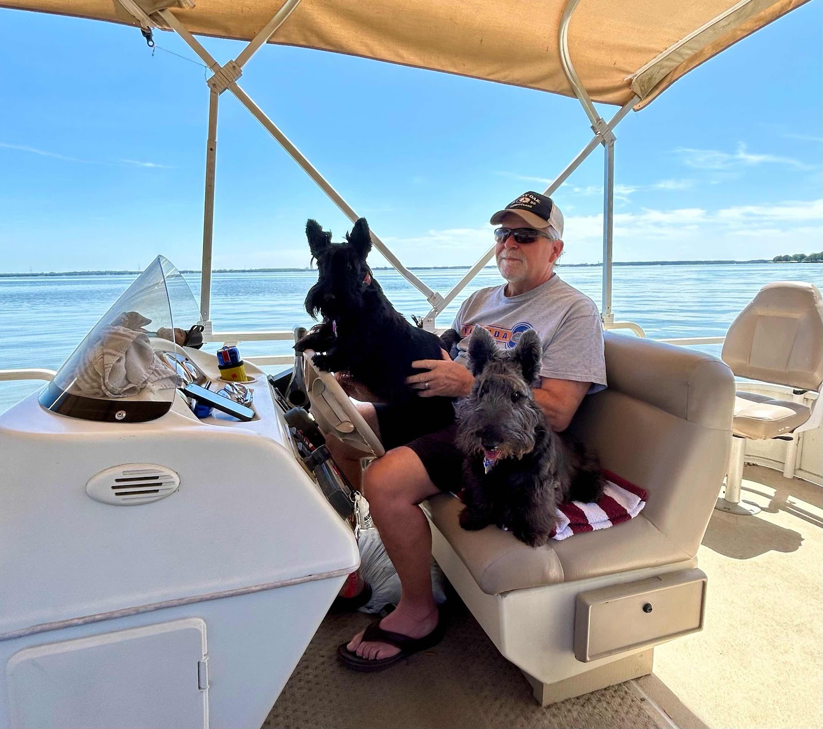 Friday’s cruise aboard Mrs. R B … Robbie sat with Mark for 2 hours! Both Scotties enjoy a boat ride.